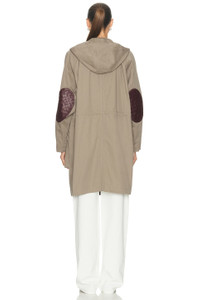 Details - Self and lining: 100% cotton - Made in Italy - Dry clean - Covered front zip closure with snap button closure - Dual snap button flap pockets at front - Interior hidden pockets - Interior drawstring at waistband for optional styling - Twill textile - Contrast faux leather trim - Woven elbow patches - Our Style No. BOTT-WO75 - Manufacturer Style No. 841381-V5PB0-1796