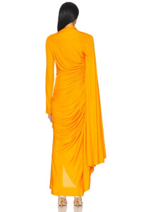 Details - 100% viscose - Made in Italy - Dry clean - Unlined - Hidden side zipper closure - Side slit pockets - Draped long dress in lightweight matte viscose jersey with ruching detail - Our Style No. BOTT-WD104 - Manufacturer Style No. 820988-V4N20-7274