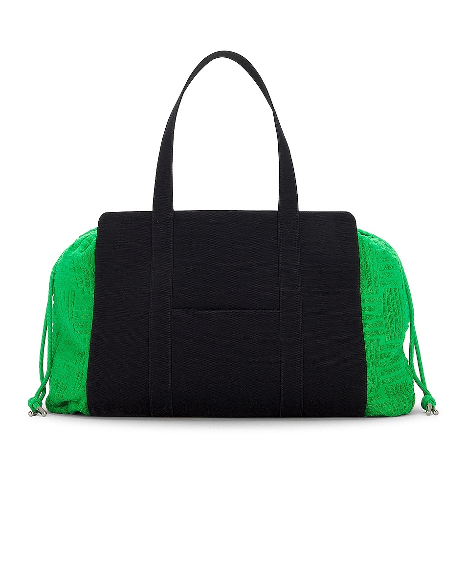 Details - Jacquard terry and canvas with ripstop lining - Made in Italy - Drawstring top closure - One main compartment with detachable zip pouch - Front and back flat pockets - Measures approx 22" W x 17" H x 9.4" D - Top handles with a 9.4" drop - Our Style No. BOTT-MY124 - Manufacturer Style No. 709442VMAX3