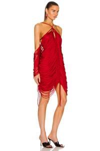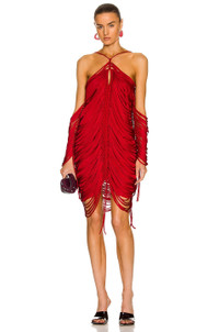 Details - 96% viscose, 4% polyamide - Made in Italy - Dry clean only - Fully lined - Pull-on styling - Halterneck styling with cold-shoulder detail - Draped loop fringe fabric throughout - Asymmetric hem - Our Style No. BOTT-WD41 - Manufacturer Style No. 673508 V1CQ0 6442