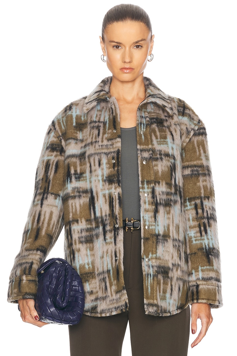 Details - Self: 64% wool, 46% alpaca - Lining: 100% cotton - Padding: 100% polyester - Made in Italy - Dry clean only - Front button snap closure - Side seam pockets - Buttoned cuffs - Shaggy wool fabric - Our Style No. BOTT-WO55 - Manufacturer Style No. 804587-V4NT0-1407