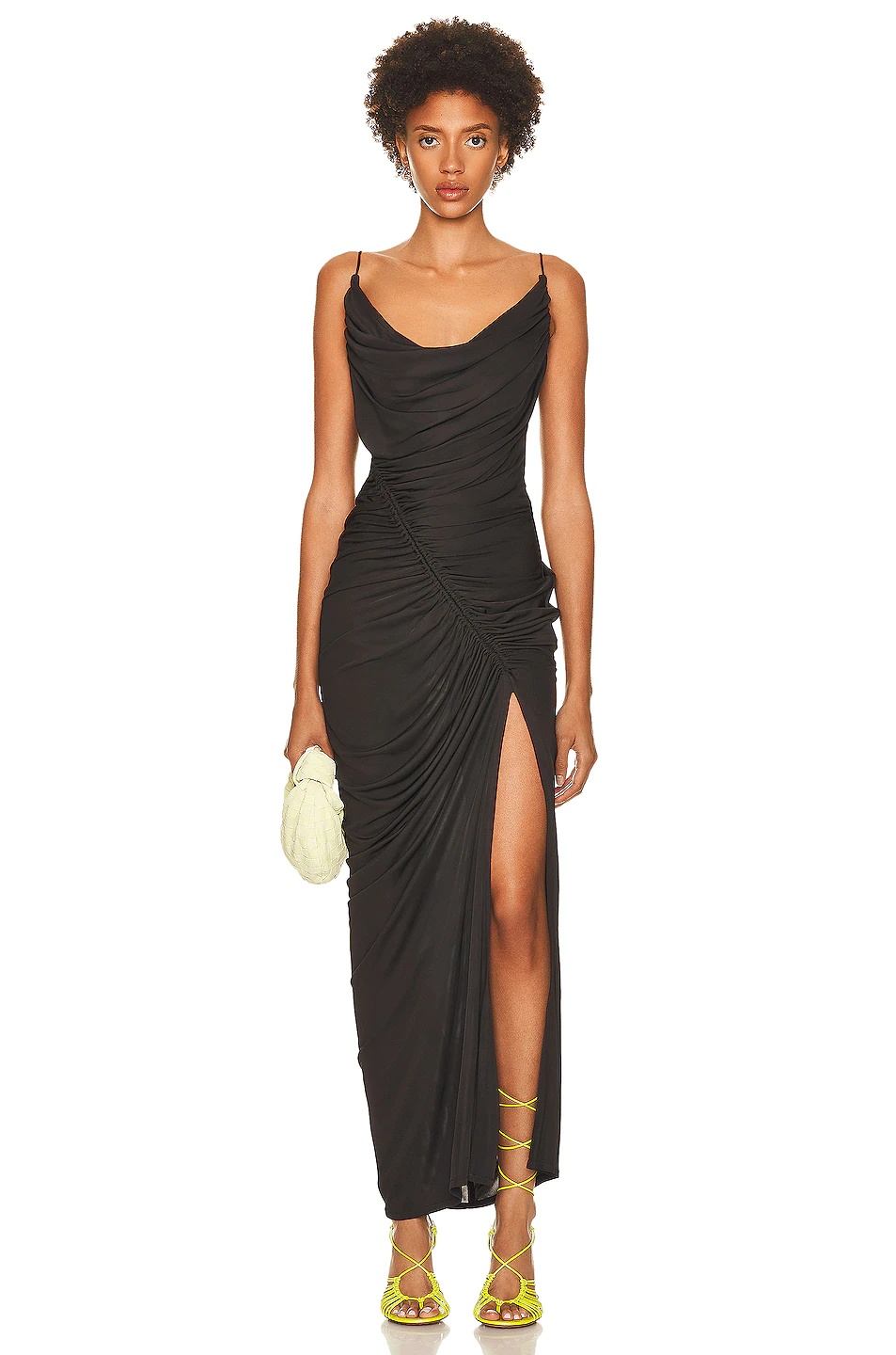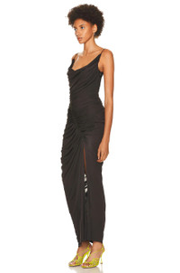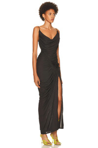 Details - Self: 100% viscose - Contrast Fabric: 67% viscose, 31% polyamide, 2% elastane - Made in Italy - Dry clean only - Attached bustier lining - Hidden side zip closure - Adjustable drawstring - Slinky fabric - Our Style No. BOTT-WD57 - Manufacturer Style No. 670017 VKUQ0