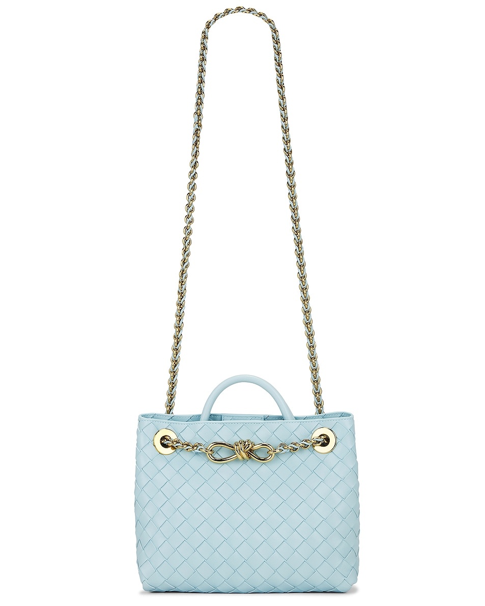 Details - Intrecciato nappa leather with smooth leather lining - Made in Italy - Top magnetic button closure - One main compartment - Interior zipper pocket and slip pockets - Structured top handle with braided leather shoulder strap with gold-tone knotted hardware - Measures approx 23 cm W x 20 cm H x 10 cm D - Shoulder strap with a 51 cm drop - Top handle with a 6 cm drop - Our Style No. BOTT-WY1866 - Manufacturer Style No. 786008-VCPP1-4840