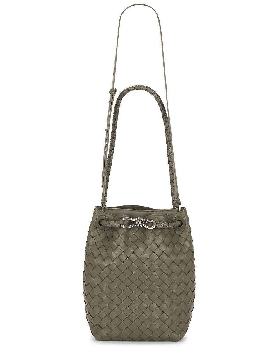 Details - Intreciatto leather exterior with lambskin lining - Open top - One main compartment - Interior zipper pocket - Adjustable and detachable cross-body strap - Measures approx 19 cm W x 30 cm H x 11 cm D - Shoulder strap with a 45 cm drop - Made in Italy - Our Style No. BOTT-WY1971 - Manufacturer Style No. 855759-VCPP1-3297