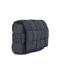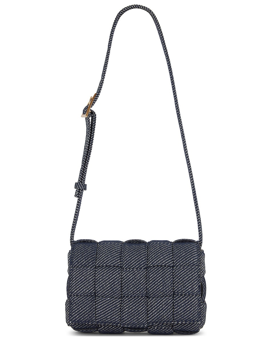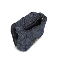Details - Intreccio denim with aged gold-tone hardware - Made in Italy - Foldover top with slide-lock fastening - One main compartment with single zip pocket - Adjustable shoulder strap - Measures approx 10.2" W x 7.1" H x 3.1" D - Adjustable shoulder strap with a 19" drop - Our Style No. BOTT-WY936 - Manufacturer Style No. 702669 V21V0 4019