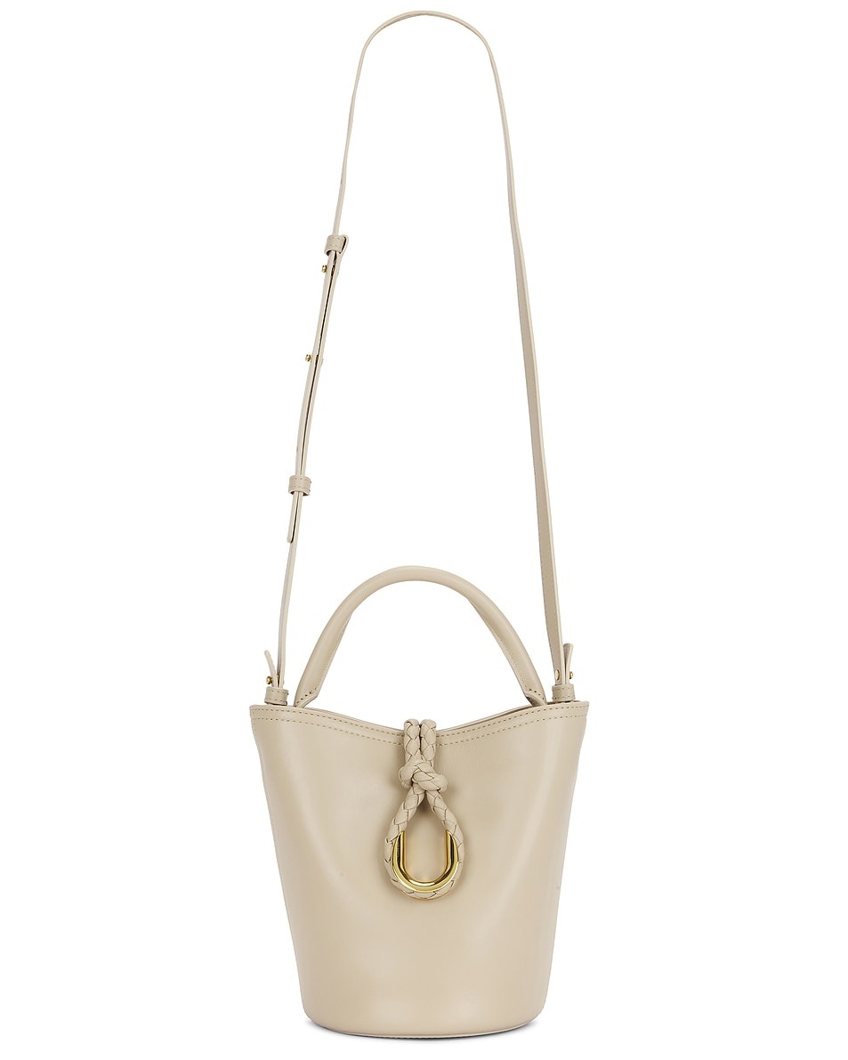 Details - Shiny calf leather exterior with suede lining - Made in Italy - Open top styling - One main compartment - Leather coaxial cord with sculptural metal closure - Measures approx 18 cm W x 30 cm H x 18 cm D - Shoulder strap with a 46 cm drop - Top handle with a 26 cm drop - Our Style No. BOTT-WY1842 - Manufacturer Style No. 815244-V4SJ1-9614