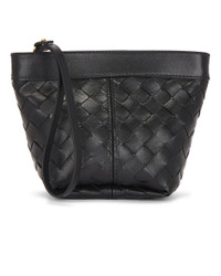 Details - Intrecciato leather exterior with canvas lining - Made in Italy - Top zipper closure - One main compartment - Detachable leather wristlet - Measures approx 16 cm W x 15 cm H x 6 cm D - Wristlet with a 18 cm drop - Our Style No. BOTT-WY1855 - Manufacturer Style No. 805577-V3IV1-8425