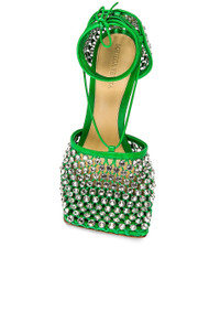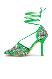 Details - Mesh and leather upper with rubber-injected leather sole - Made in Italy - Ankle wrap with tie closure - Allover crystal embellishments - Square toe - Approx 95mm/ 3.75 inch heel - Our Style No. BOTT-WZ376 - Manufacturer Style No. 667206 V0GU1 3750