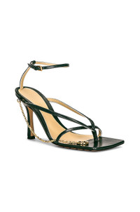Details - Nappa upper with rubber-injected leather sole and gold-tone hardware - Made in Italy - Ankle strap with buckle closure - Detachable chainlink & toe ring accent - Square toe - Approx 95mm/ 3.75 inch heel - Our Style No. BOTT-WZ373 - Manufacturer Style No. 708893 VBSF0 4615