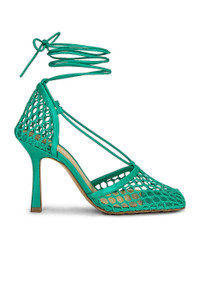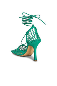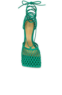 Details - Mesh and lambskin upper with rubber-injected leather sole - Made in Italy - Ankle wrap with tie closure - Leather lining with debossed Bottega Veneta logo - Square toe - Approx 90mm/ 3.5 inch heel - Our Style No. BOTT-WZ327 - Manufacturer Style No. 651388 VBSD3 3227
