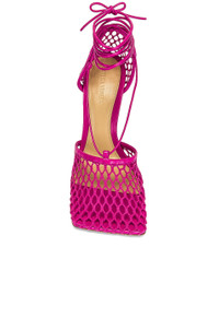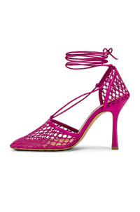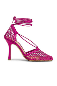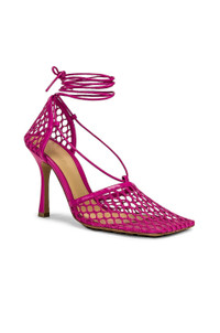 Details - Mesh and leather upper with rubber-injected leather sole - Made in Italy - Ankle wrap with tie closure - Leather lining with debossed Bottega Veneta logo detail - Square toe - Approx 100mm/ 4 inch heel - Our Style No. BOTT-WZ316 - Manufacturer Style No. 651388 VBSD3 5148