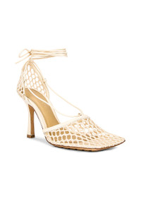 Details - Textile net upper with leather sole - Made in Italy - Approx 90mm/ 3.5 inch heel - Wrap around leather ankle strap with tie closure - Rubber-injected leather sole for comfort and stability - Leather trim - Our Style No. BOTT-WZ122 - Manufacturer Style No. 651388 VBSD3 9213