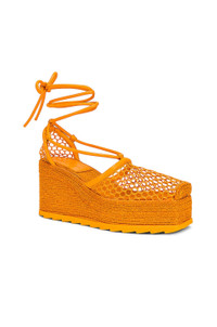 Details - Mesh and leather upper with rubber sole - Textile midsole - Made in Spain - Ankle wrap with tie closure - Leather and textile footbed with debossed Bottega Veneta logo detail - Square, flat toe - Approx 89mm/ 3.5 inch wedge - Our Style No. BOTT-WZ275 - Manufacturer Style No. 689536 V1O01 7593