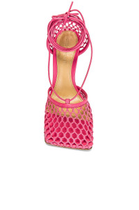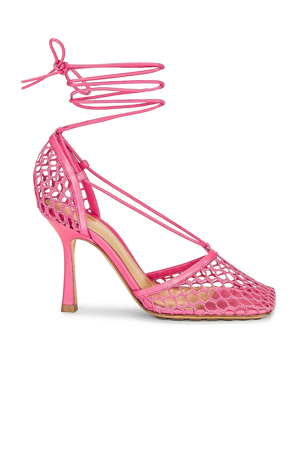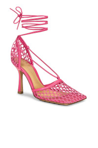 Details - Cotton mesh and lambskin upper with rubber-injected leather sole - Made in Italy - Ankle wrap with tie closure - Leather footbed - Square toe - Approx 89mm/ 3.5 inch heel - Our Style No. BOTT-WZ347 - Manufacturer Style No. 651388 VBSD3 5963