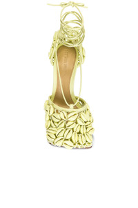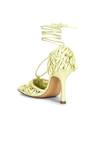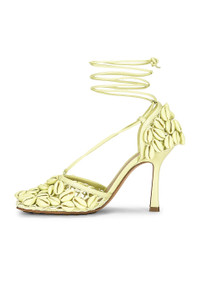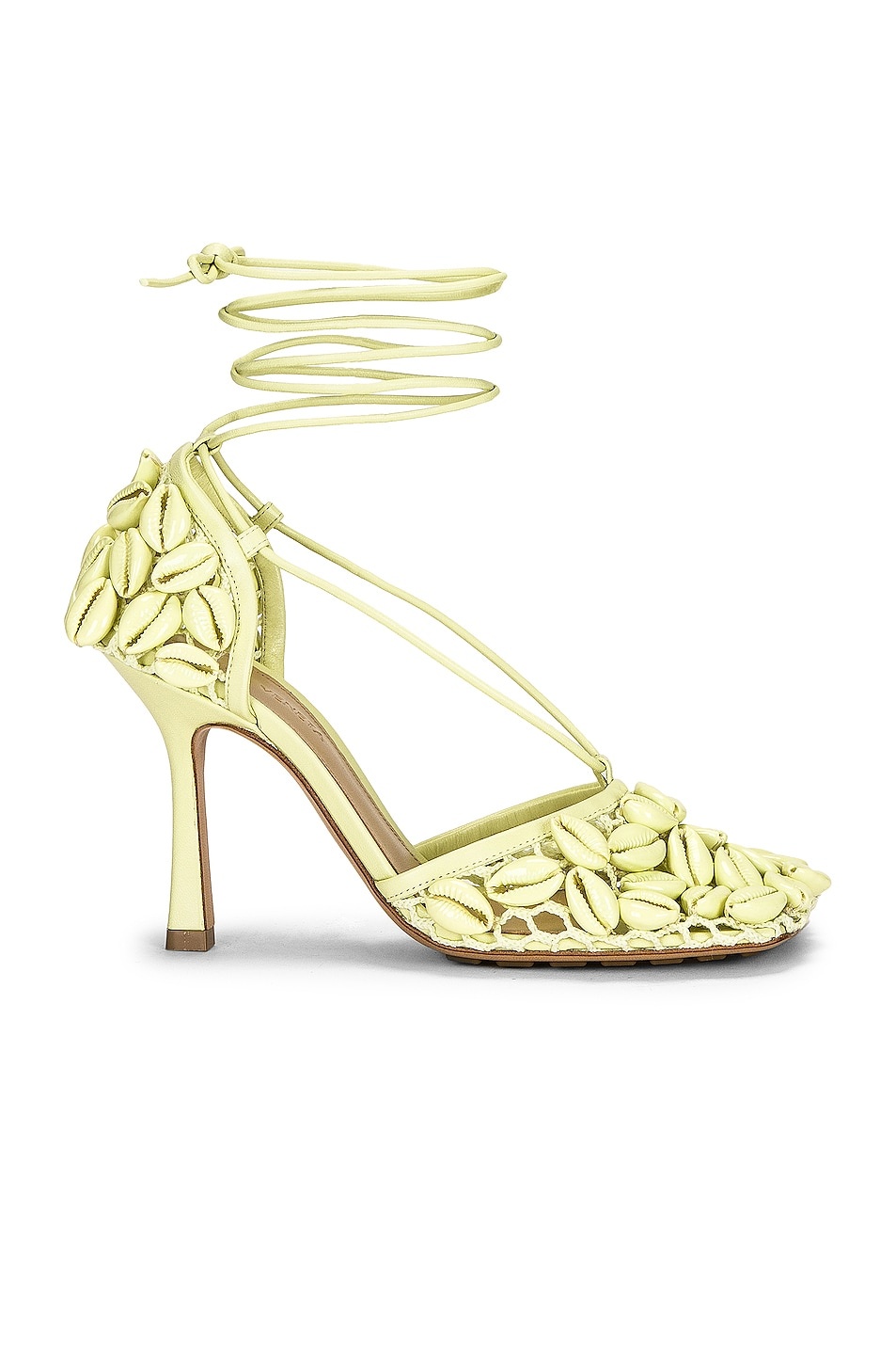 Details - Hand-embroidered shell mesh upper with rubber-injected leather sole - Made in Italy - Ankle wrap with tie closure - Leather footbed with debossed Bottega Veneta logo detail - Square toe - Approx 89mm/ 3.5 inch heel - Our Style No. BOTT-WZ328 - Manufacturer Style No. 690026 V0GU2 7765