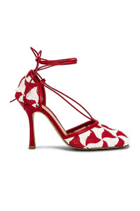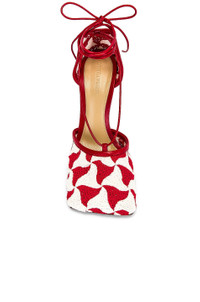 Details - Mesh and lambskin leather upper with rubber-injected leather sole - Made in Italy - Ankle wrap with tie closure - Leather lining with debossed Bottega Veneta logo detail - Square toe - Approx 104mm/ 4.1 inch heel - Our Style No. BOTT-WZ287 - Manufacturer Style No. 690513 V1MM1 8959