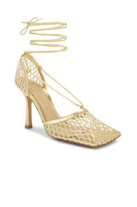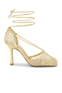 Details - Mesh and metallic leather upper with rubber-injected leather sole - Made in Italy - Ankle wrap with tie closure - Leather footbed - Square toe - Approx 90mm/ 3.5 inch heel - Our Style No. BOTT-WZ340 - Manufacturer Style No. 651388 V1BT1 8265