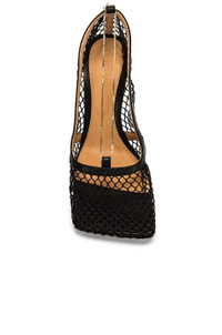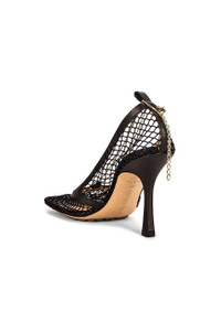 Details - Mesh and calfskin leather upper with leather sole - Made in Italy - Approx 75mm/ 3 inch heel - Delicate gold-tone chain-link detail with clasp closure - Rubber-injected leather sole for comfort and stability - Our Style No. BOTT-WZ54 - Manufacturer Style No. 578321 VBPS1 1001