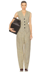 Details - Self 1: 48% wool, 26% cotton, 26% polyester - Self 2: 100% viscose - Lining: 100% - Made in Italy - Dry clean only - Front button closure - Tie-up accent at waist - Front welt pockets - Front tweed fabric design - Satin fabric on back - Our Style No. BOTT-WS85 - Manufacturer Style No. 794207-V4BW0-1487