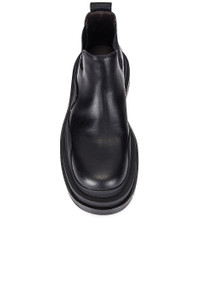 Details - Calfskin leather upper with rubber sole - Made in Italy - Shaft measures approx 100mm/4 inch in height - Approx 32mm/ 1.25 inch platform - Approx 50mm/ 2 inch heel - Pull-on styling - Elastic side gussets - Pull tabs at heel and front - Bulky round toe - Our Style No. BOTT-WZ152 - Manufacturer Style No. 630300 VBS50 1029