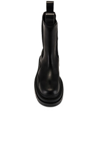 Details - Vegetable tanned calfskin leather upper with rubber sole - Made in Italy - Pull-on styling with gore side panels - Tonal elastic side panels and back and front loops - Chunky tread sole - Bulky rounded toe - Fits large to size, take a full size smaller than normal - Approx 50mm/ 2 inch heel - Shaft measures approx 241mm/ 9.5 inches in height - Approx 31mm/ 1.25 inch platform - Our Style No. BOTT-MZ21 - Manufacturer Style No. 630284 VBS50 1378