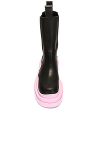 Details - Vegetally-tanned calfskin with contrasting wavy rubber sole - Made in Italy - Pull-on styling - Side elastic gussets - Front and heel pull tabs - Bulky round toe - Approx 50mm/ 2 inch heel - Approx 229mm/ 9 inch shaft - Shaft measures approx 18.84" in circumference - Our Style No. BOTT-WZ473 - Manufacturer Style No. 630297-VBS50-1336