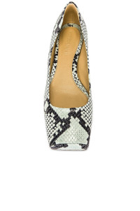 Details - Python-embossed goatskin leather upper with rubber-injected leather sole - Made in Italy - Kidskin lining with debossed Bottega Veneta logo - Pointe inspired square toe with block heel - Includes dust bag - Approx 25mm/ 1 inch heel - Our Style No. BOTT-WZ262 - Manufacturer Style No. 692090 V1T20 4899