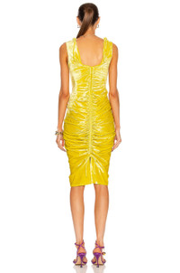 Details - 77% viscose, 21% silk, 2% elastane - Made in Italy - Dry clean only - Attached bustier liner - Hidden side zip closure - Tie detail at shoulder straps - Center seam drawstrings to create a draped and ruched fabric detail - Mid-weight crushed velvet fabric - Our Style No. BOTT-WD33 - Manufacturer Style No. 669034 V01W0 7275