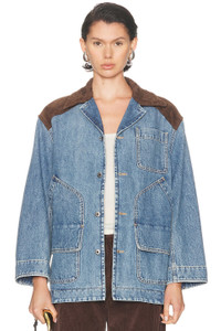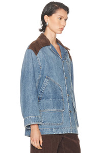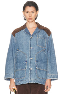 Details - Self 1: 100% cotton - Self 2: 100% lambskin - Professional leather cleaning only - Front button closure - 5-front pocket design - Denim fabric with genuine suede at collar and shoulders - Made in Italy - Our Style No. BOTT-WO73 - Manufacturer Style No. 837922-V42W0-4715