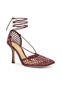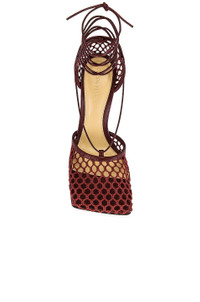 Details - Mesh and lambskin leather upper with rubber-injected leather sole - Made in Italy - Ankle wrap with tie closure - Leather footbed - Square toe with flared heel - Approx 100mm/ 4 inch heel - Our Style No. BOTT-WZ383 - Manufacturer Style No. 651388-VBSD3-6084
