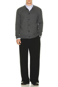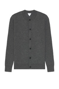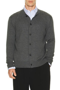 Men's Ribbed Wool Cardigan with Leather Buttons