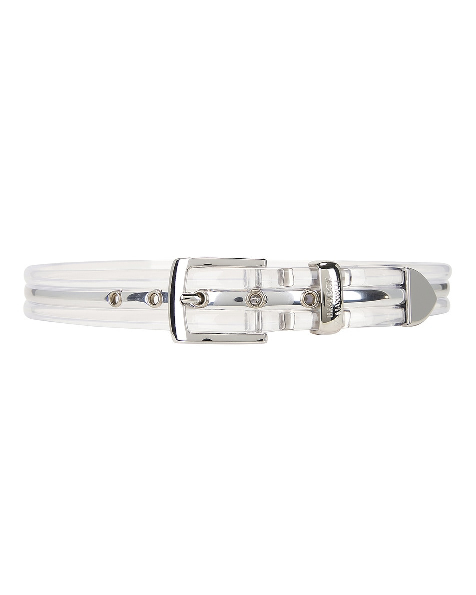 Details - 100% PVC strap with silver-tone plated buckle - Single-prong buckle with adjustable fit - Transparent PVC strap creates a floating effect, adding intrigue to any outfit - Sleek silver-tone buckle complements the minimalist design - Versatile accessory that pairs well with both casual and formal ensembles - Made in US - Our Style No. BMAX-WA5 - Manufacturer Style No. ACC-BLT078SS25