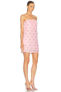 Details - Self: 90.3% polyester, 9.7% spandex - Lining: 100% silk - Contrast Fabric: 93% silk, 7% spandex - Made in India - Dry clean only - Fully lined - Hidden back zip closure - Boned bodice - Allover pink-tone rhinestone accents - Midweight organza fabric - Our Style No. BMAX-WD100 - Manufacturer Style No. DR740SS25