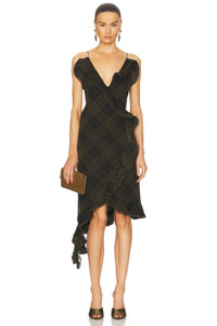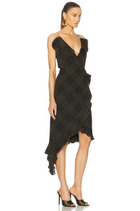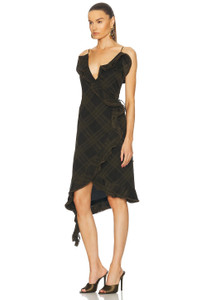 Details - Self & Lining: 100% silk - Contrast Fabric: 100% mother of pearl - Made in Italy - Dry clean only - Fully lined - Front adjustable tie closure - Asymmetrical hem and ruffle trim - Lightweight satin fabric - Our Style No. BURF-WD73 - Manufacturer Style No. 8103580