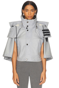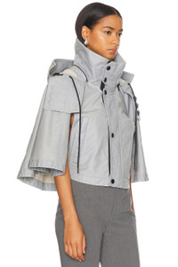 Details - Self 1: 100% cotton - Self 2: 100% goat suede - Made in Italy - Spot clean only - Hidden front zipper and button snap closures - Stand collar and detachable drawcord hood design - Side zipper pockets - B shield suede patch at shoulder - Twill fabric with front slits - Our Style No. BURF-WO201 - Manufacturer Style No. 8109388