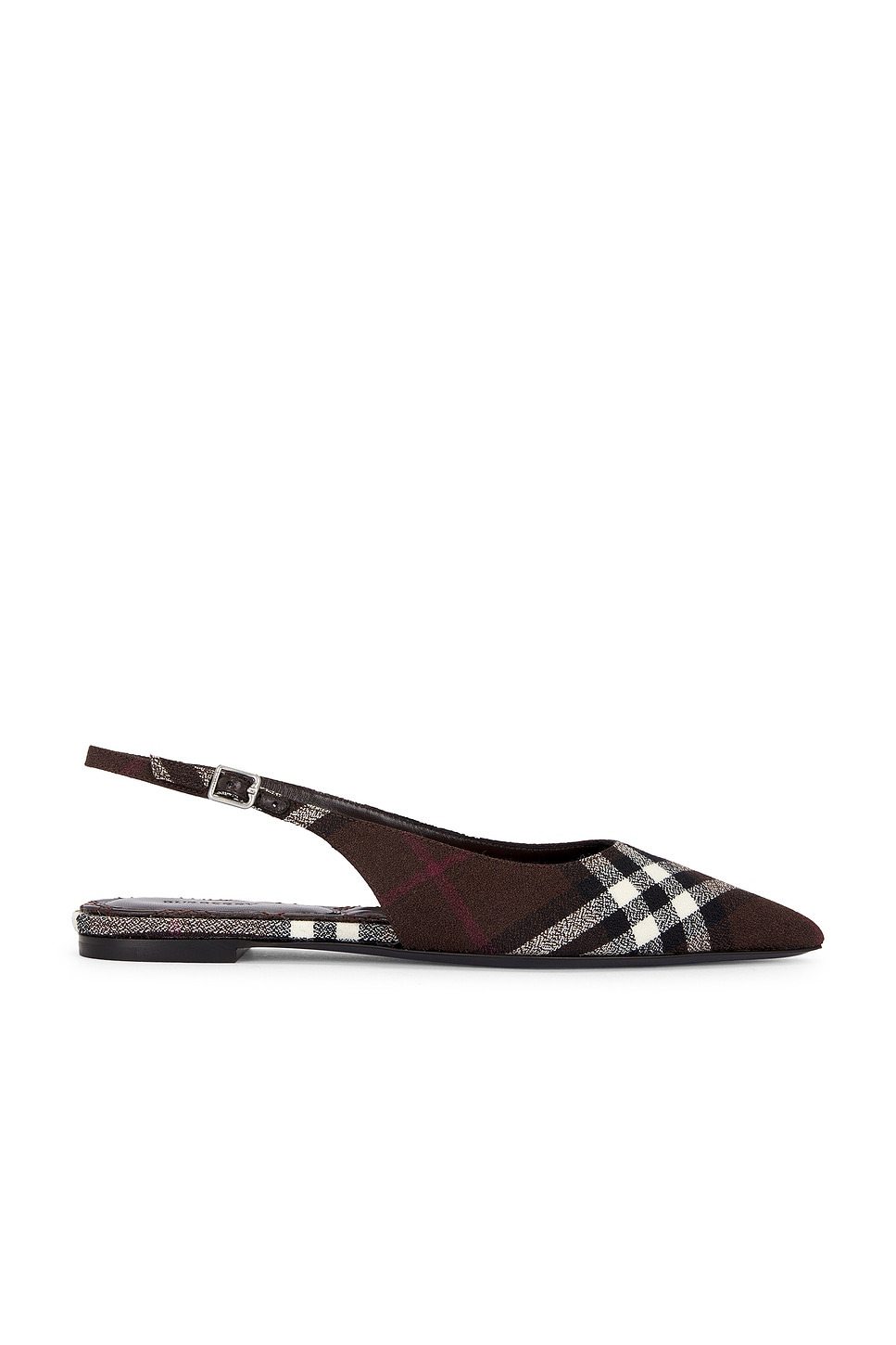 Details - Linen upper with a leather sole - Point-toe slingback - Adjustable buckled strap - Quilted insole - Engraved Burberry lettering at buckle - Made in Italy - Our Style No. BURF-WZ112 - Manufacturer Style No. 8114146