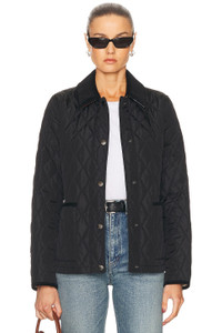 Details - Self: 100% polyamide - Filling: 100% polyester - Lining: 100% cotton - Dry clean only - Front button snap closure - Front lower patch pockets - Corduroy collar detail - Quilted taffeta fabric with light padding - Made in Thailand - Our Style No. BURF-WO203 - Manufacturer Style No. 8107510