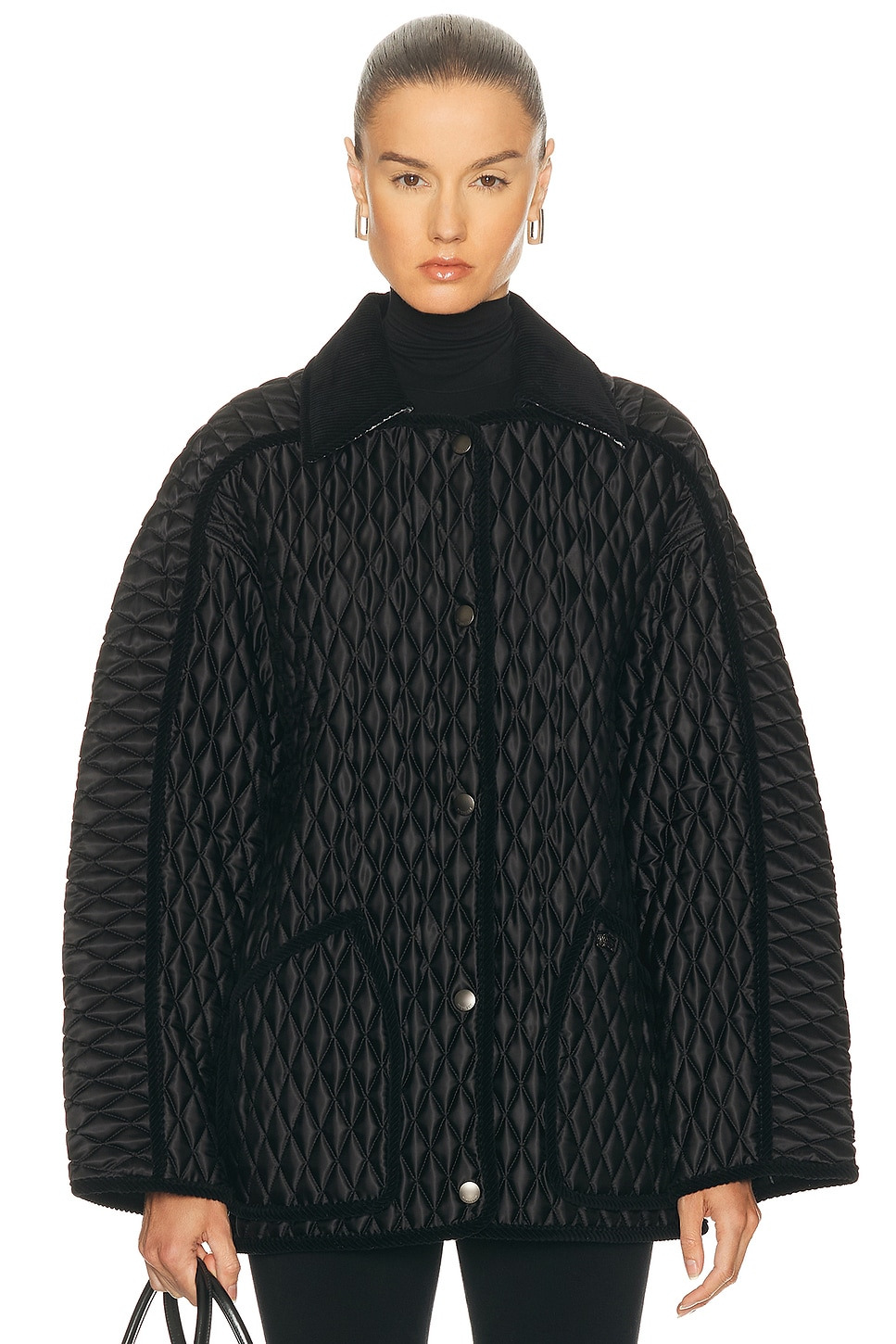 Details - 100% Cotton - Dry clean - Exposed front button closure - Front slip pockets - Quilted style fabric - Made in Romania - Our Style No. BURF-WO223 - Manufacturer Style No. 8113603