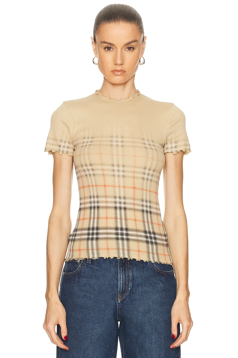 Details - 95% cotton, 5% elastane - Made in Portugal - Machine wash - Lettuce -edge trims - Faded novelty plaid design - Lightweight ribbed jersey textile - Our Style No. BURF-WS208 - Manufacturer Style No. 8119042