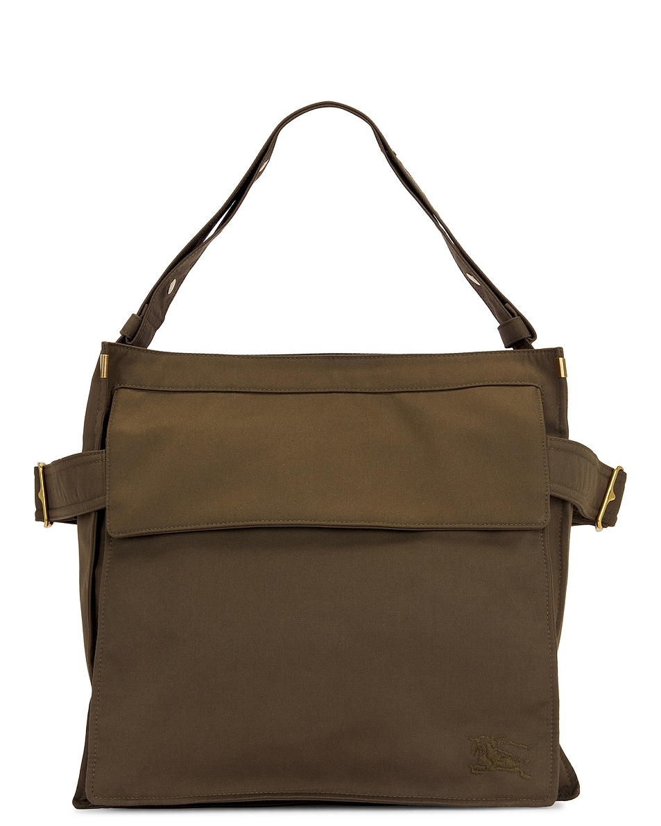 Details - Brushed twill exterior with textile lining - Made in Italy - One main compartment - Interior zipper pocket - Front and back flap pockets with dual adjustable buckled straps - Embroidered Equestrian Knight design at front - Integrated and adjustable shoulder strap - Measures approx 39 cm W x 38 cm H x 15 cm D - Shoulder strap with a 51 cm drop - Our Style No. BURF-MY94 - Manufacturer Style No. 8092038
