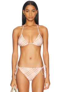 Beige Check Bikini Top