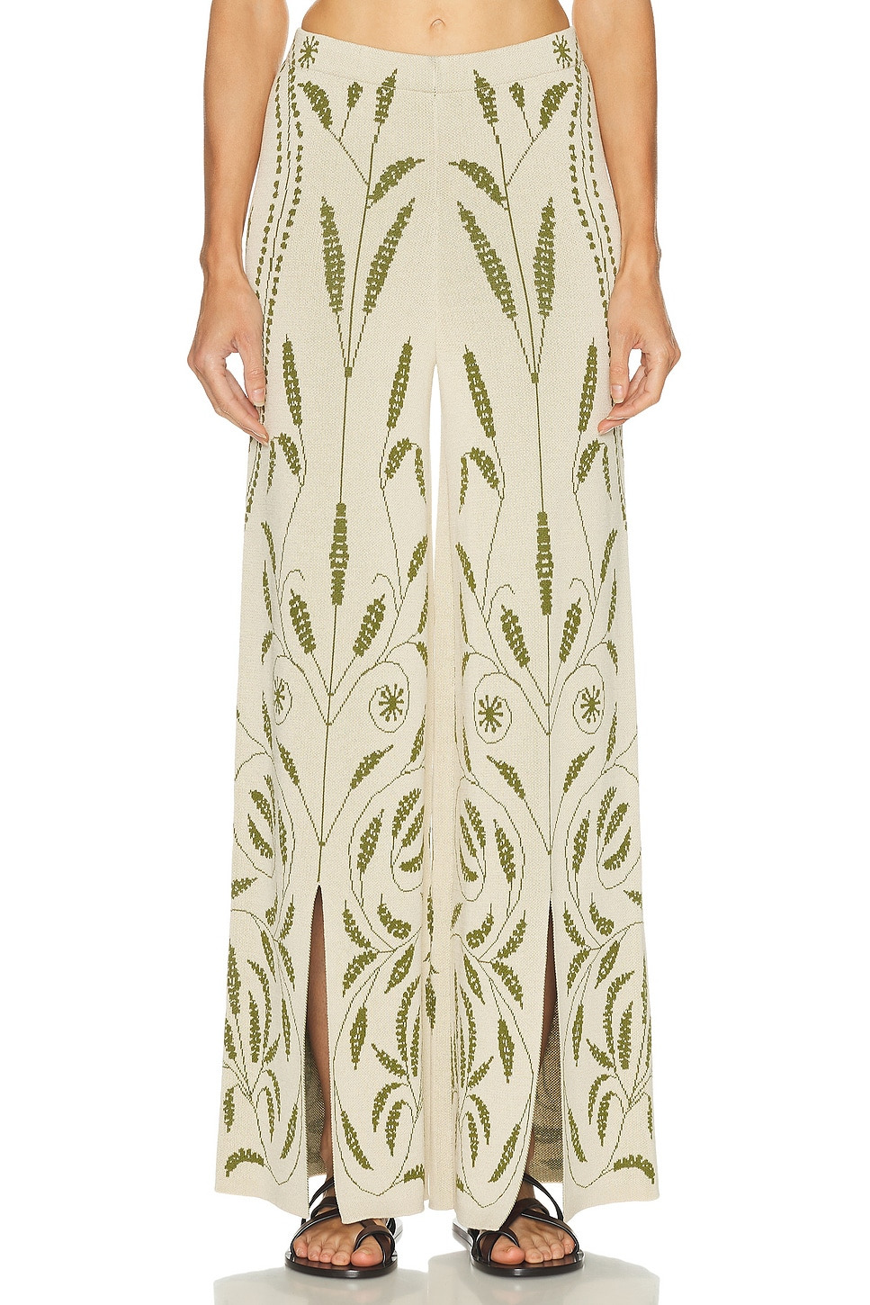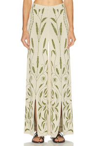 Details - 87% viscose, 13% polyamide - Hand wash - Pull-on styling - Elasticized waistband - Embroidered floral detailing - Side slits - Heavyweight knit fabric - Made in China - Our Style No. BYMF-WP9 - Manufacturer Style No. 103330