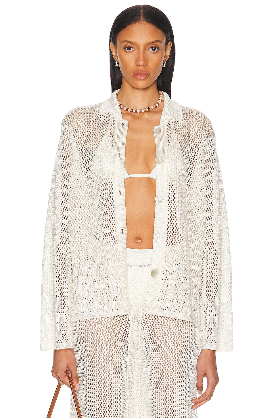Details - 100% viscose - Dry clean only - Front button closure - Open crochet fabric - Garment is intentionally sheer, undergarments will show through. - Please note undergarment not included - Item not sold as a set - Made in US - Our Style No. CLMF-WS26 - Manufacturer Style No. CDM-PS015