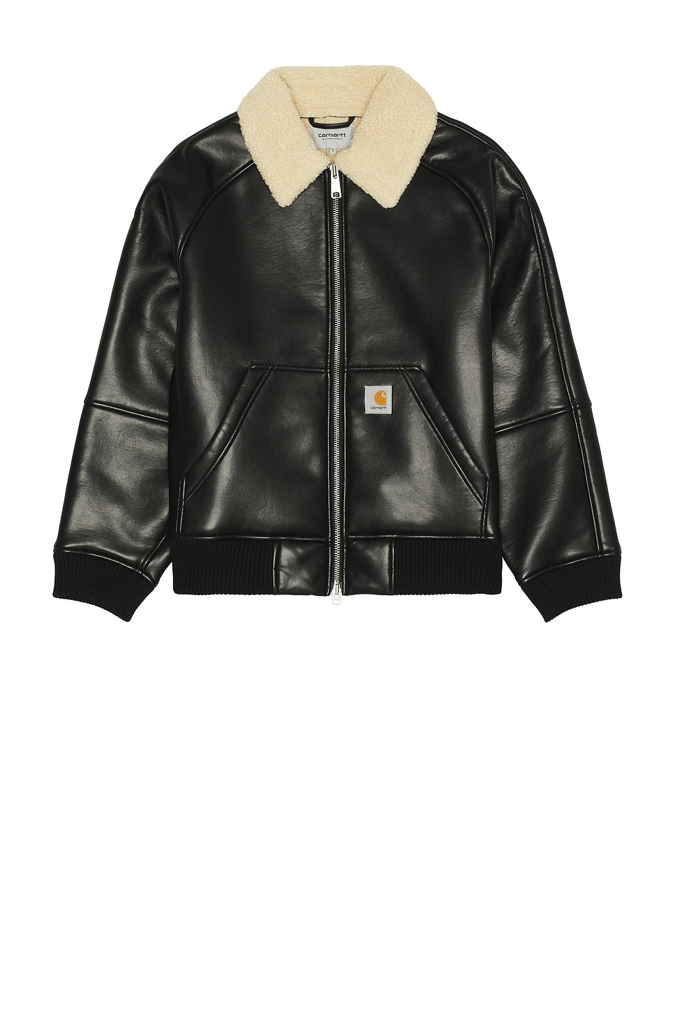 Details - Self: 67% polyurethane, 33% viscose - Lining: 100% polyester - Machine wash - Two-way front zip closure - Split kangaroo pocket - Ribbed cuffs - Fleece lining - Faux leather fabric - Made in Cambodia - Our Style No. CHWF-MO47 - Manufacturer Style No. I035974
