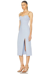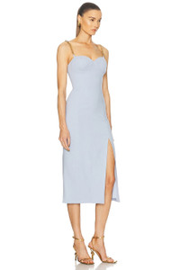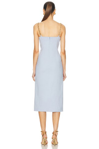 Details - Self: 97% virgin wool, 3% elastane - Lining: 100% polyester - Made in Italy - Dry clean only - Fully lined - Hidden back zipper closure - Gold-tone chain shoulder strap design - Bustier styling with underwire cups - Twill fabric with front slit - Our Style No. CRRF-WD1 - Manufacturer Style No. R2511N511BWT