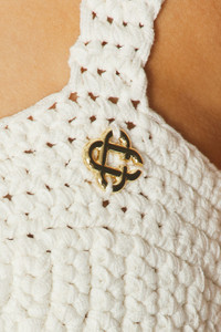 Details - 65% cotton, 35% polyamide - Made in China - Hand wash - Unlined - Back hook and eye clasp closure - Bustier design - Cut-out detail at front and back - Open crochet fabric - Garment is made with a semi-sheer fabric, undergarments can show through - Our Style No. CBLN-WD27 - Manufacturer Style No. WPS25-KW-877-01