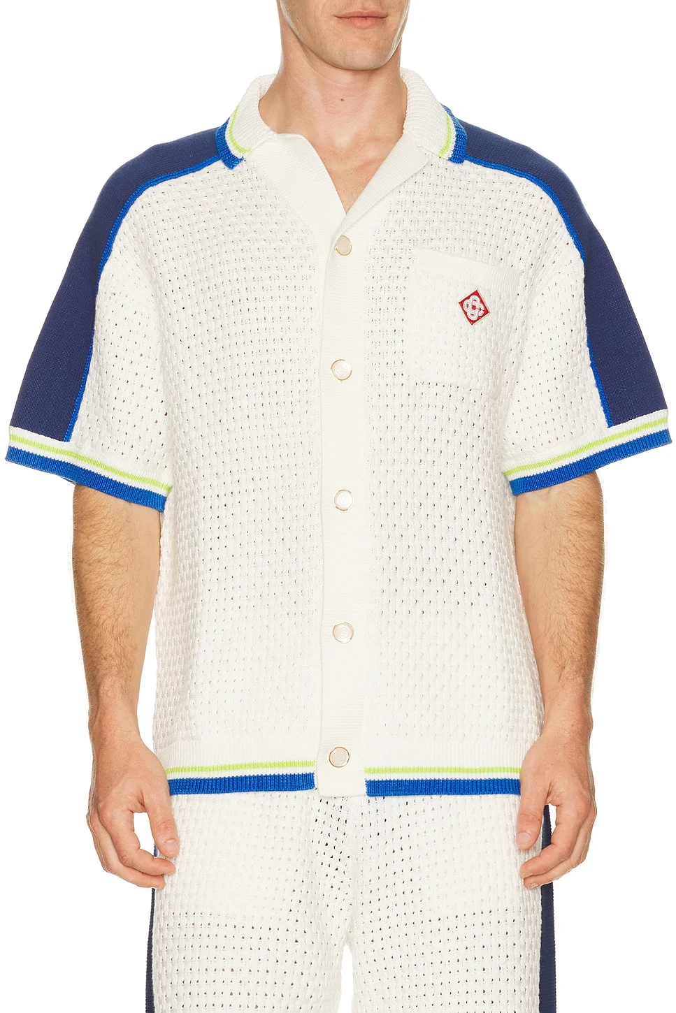 Details - Self: 52% cotton, 48% polyester - Applique: 95% viscose, 5% ethylene vinyl - Dry clean only - Front button closure - Chest slip pocket with logo detail - Ribbed trim - Midweight crochet fabric - Made in China - Our Style No. CBLN-MS182 - Manufacturer Style No. M-SS26-KW-1310-01