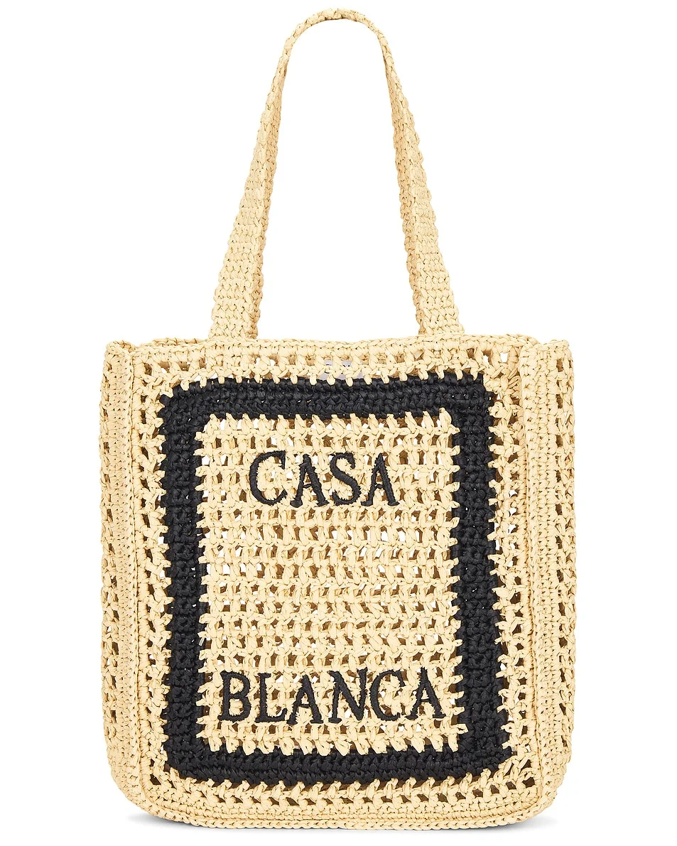Details - Crochet knit unlined raffia - Made in Italy - Open top - One main compartment - Dual shoulder straps - Measures approx 30 cm W x 36 cm H x 0 cm D - Shoulder strap with a 8 cm drop - This item is not available to ship to Australia - Our Style No. CBLN-WY22 - Manufacturer Style No. A-SP26-BAG-175-01