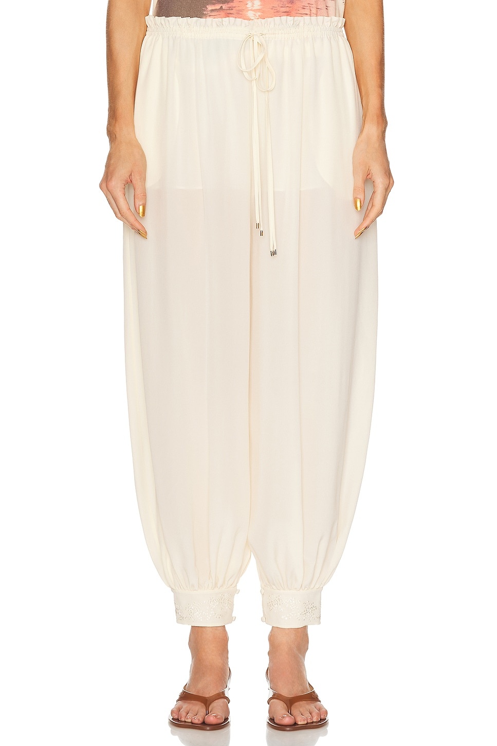 Details - Self: 100% silk - Lining: 68% acetate fiber, 32% silk - Dry clean only - Elastic waistband with exterior drawstring closure - Button loop closure at leg opening - Side seam pockets - Midweight crepe fabric - Made in Italy - Our Style No. CLOE-WP85 - Manufacturer Style No. 25APA05077