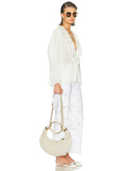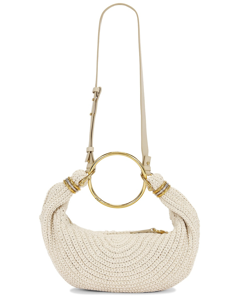 Details - Hand-crocheted fine acrylic exterior with calfskin and lambskin lining - Top zipper closure - One main compartment - Interior leather slip pocket - Stacked two-tone rings at ends - Detachable gold-tone metal ring to act as a top handle - Detachable and adjustable leather shoulder strap - Measures approx 32 cm W x 14 cm H x 10 cm D - Shoulder strap with a 50 cm drop - Top handle with a 20 cm drop - Made in Italy - Our Style No. CLOE-WY1163 - Manufacturer Style No. 25AS611Q10